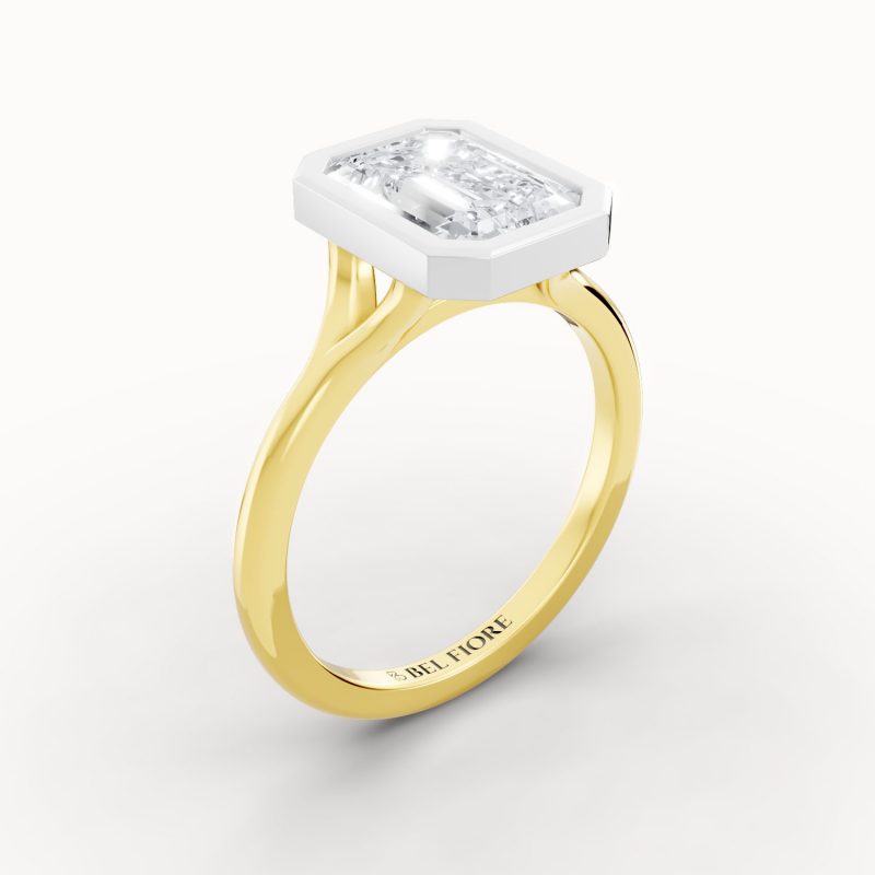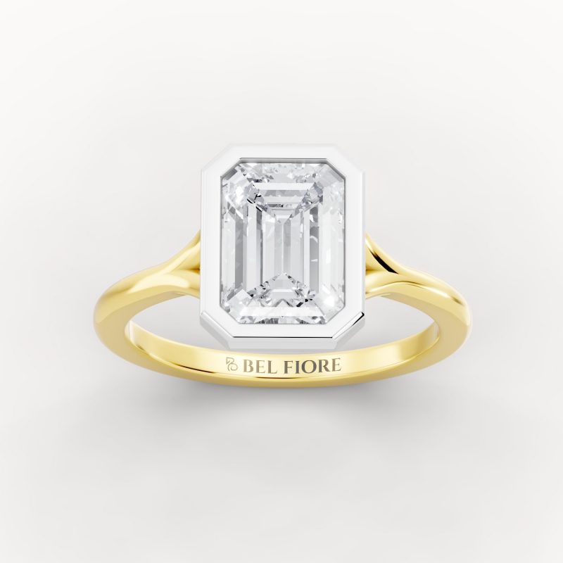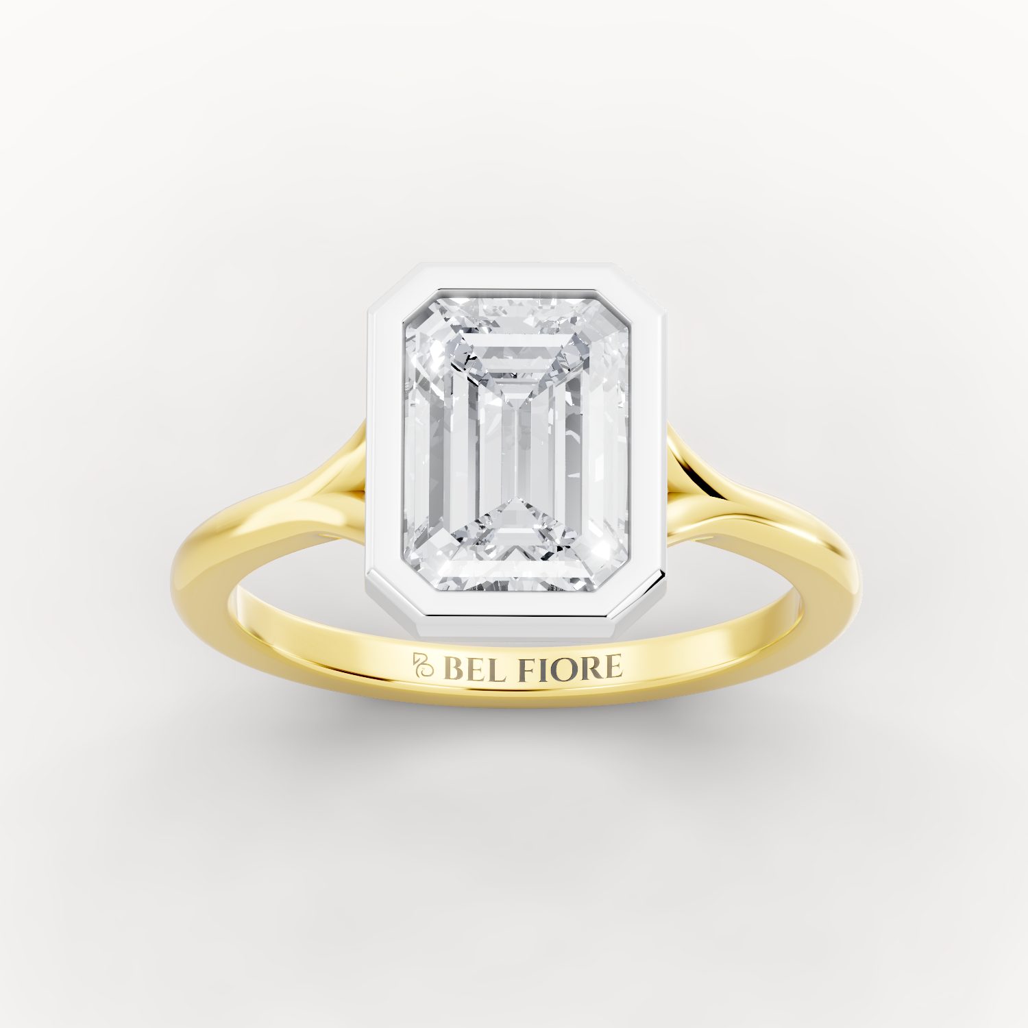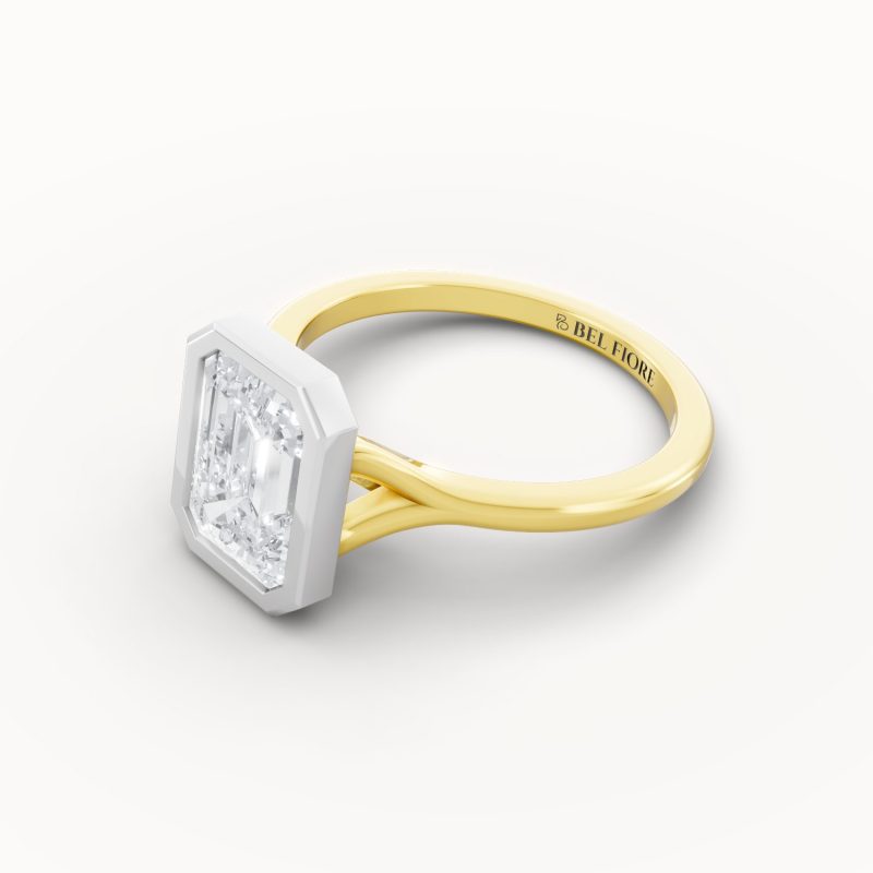 Featuring a radiant emerald-cut diamond held in a white-gold bezel atop a luminous yellow-gold band, this two-tone creation celebrates harmony in contrast. The cool brilliance of the head enhances the diamond’s sparkle, while the golden band adds warmth and vintage richness — a perfect fusion of elegance and artistry.