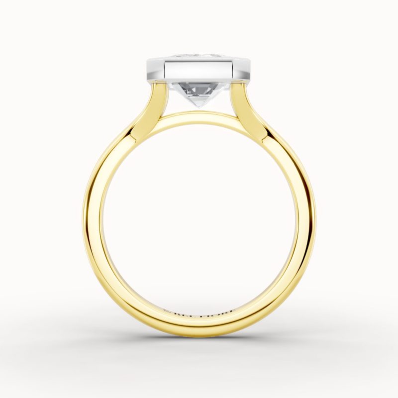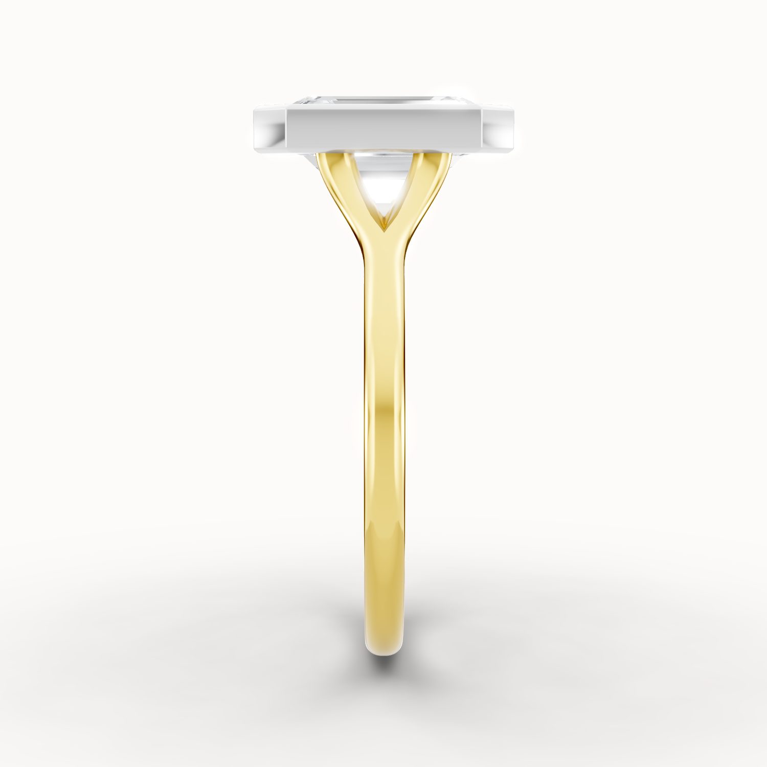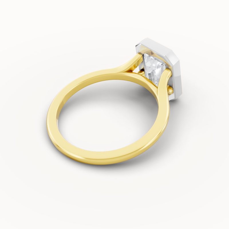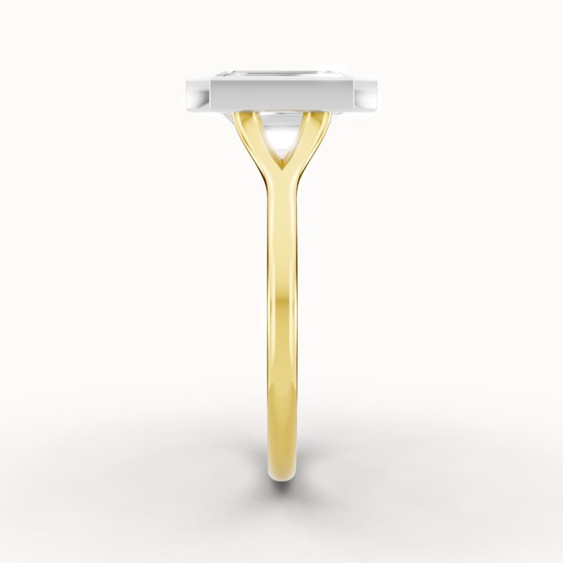 Featuring a radiant emerald-cut diamond held in a white-gold bezel atop a luminous yellow-gold band, this two-tone creation celebrates harmony in contrast. The cool brilliance of the head enhances the diamond’s sparkle, while the golden band adds warmth and vintage richness — a perfect fusion of elegance and artistry.