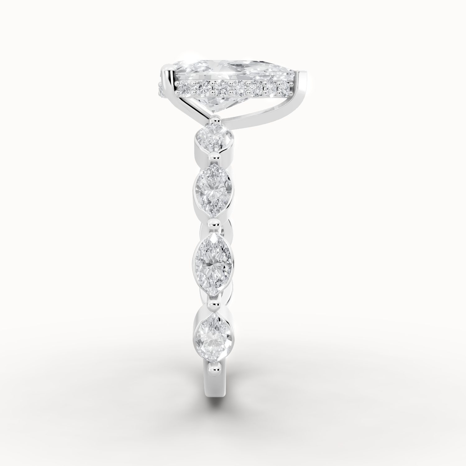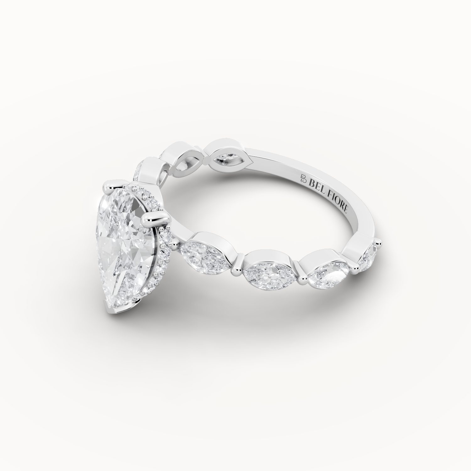 Set in sleek white gold, the pear-shaped diamond gleams with captivating brilliance. The cool metallic hue enhances the clarity and fire of each diamond, offering a refined and contemporary design that symbolizes eternal elegance and pure sophistication.