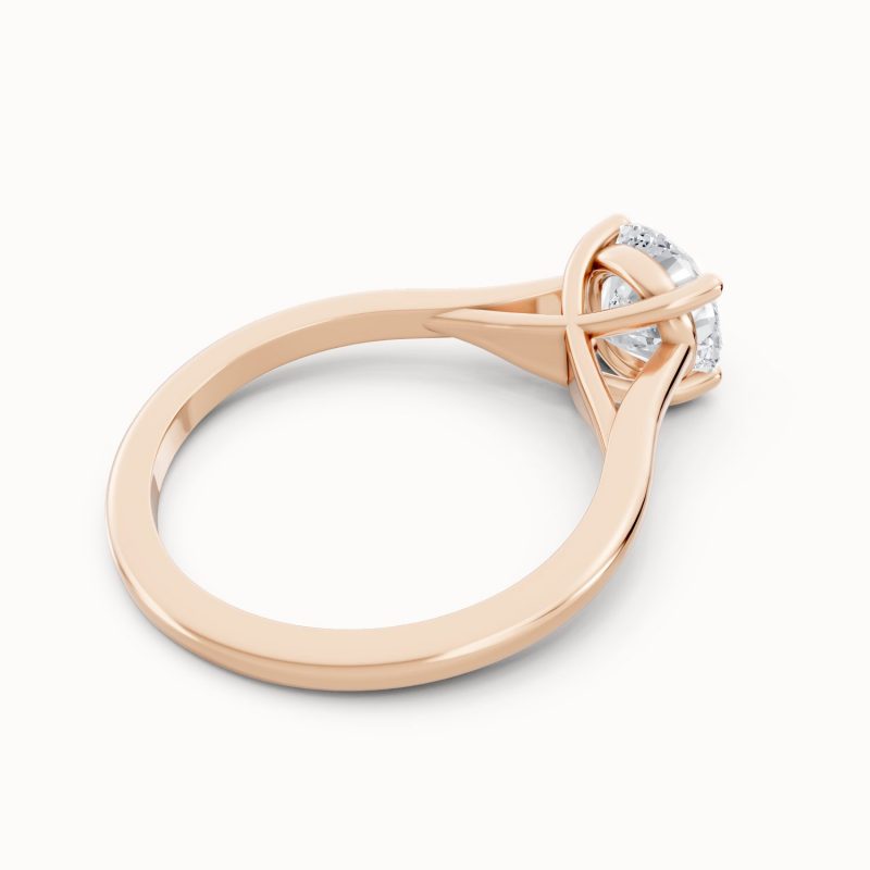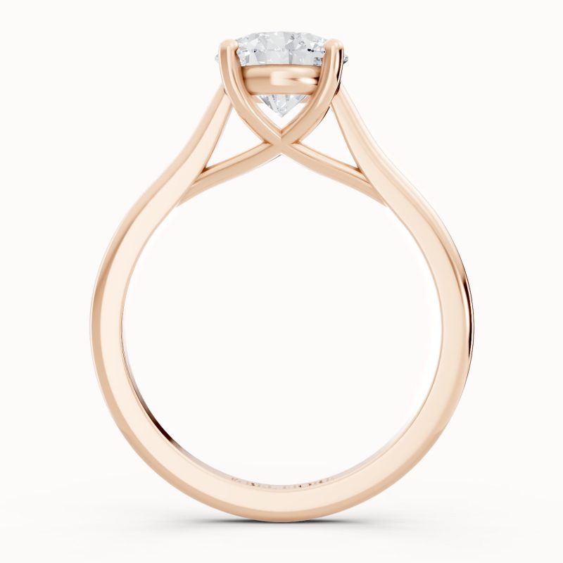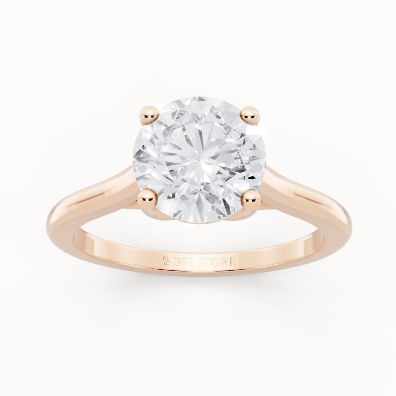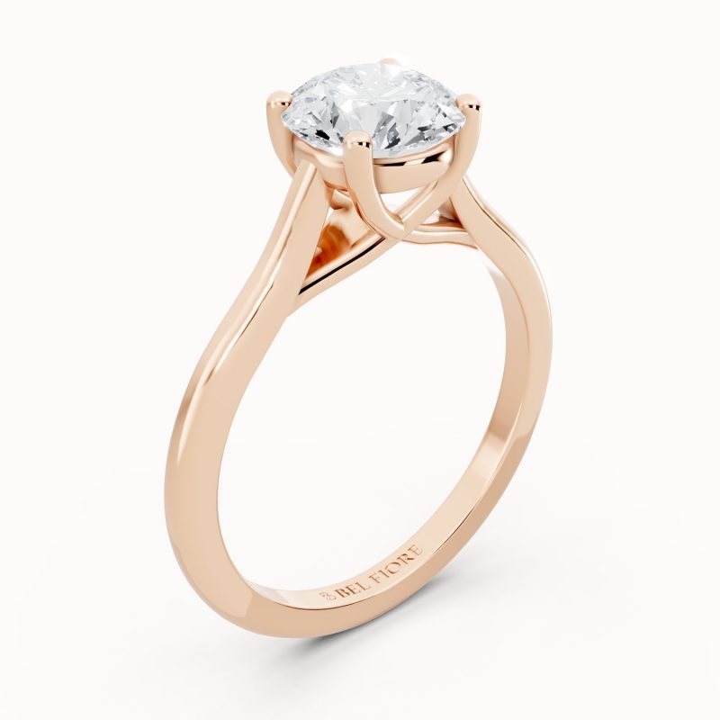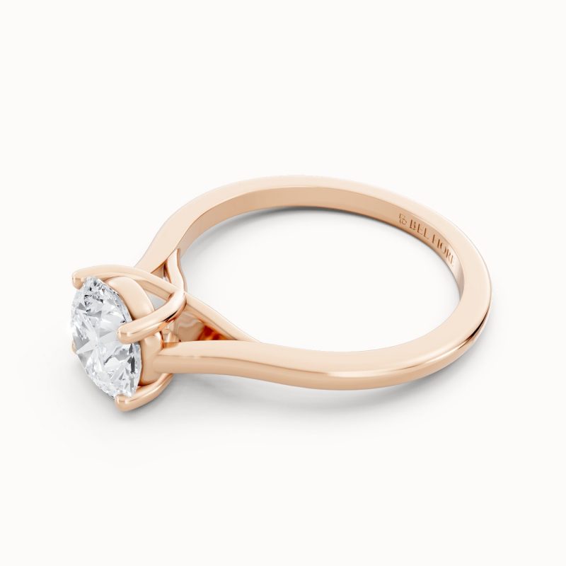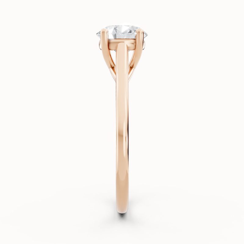 Crafted in warm rose gold, this solitaire ring highlights a brilliant round-cut center diamond held securely in classic prongs. The soft blush tones of the band bring a romantic charm, making it a perfect symbol of modern love with timeless beauty.