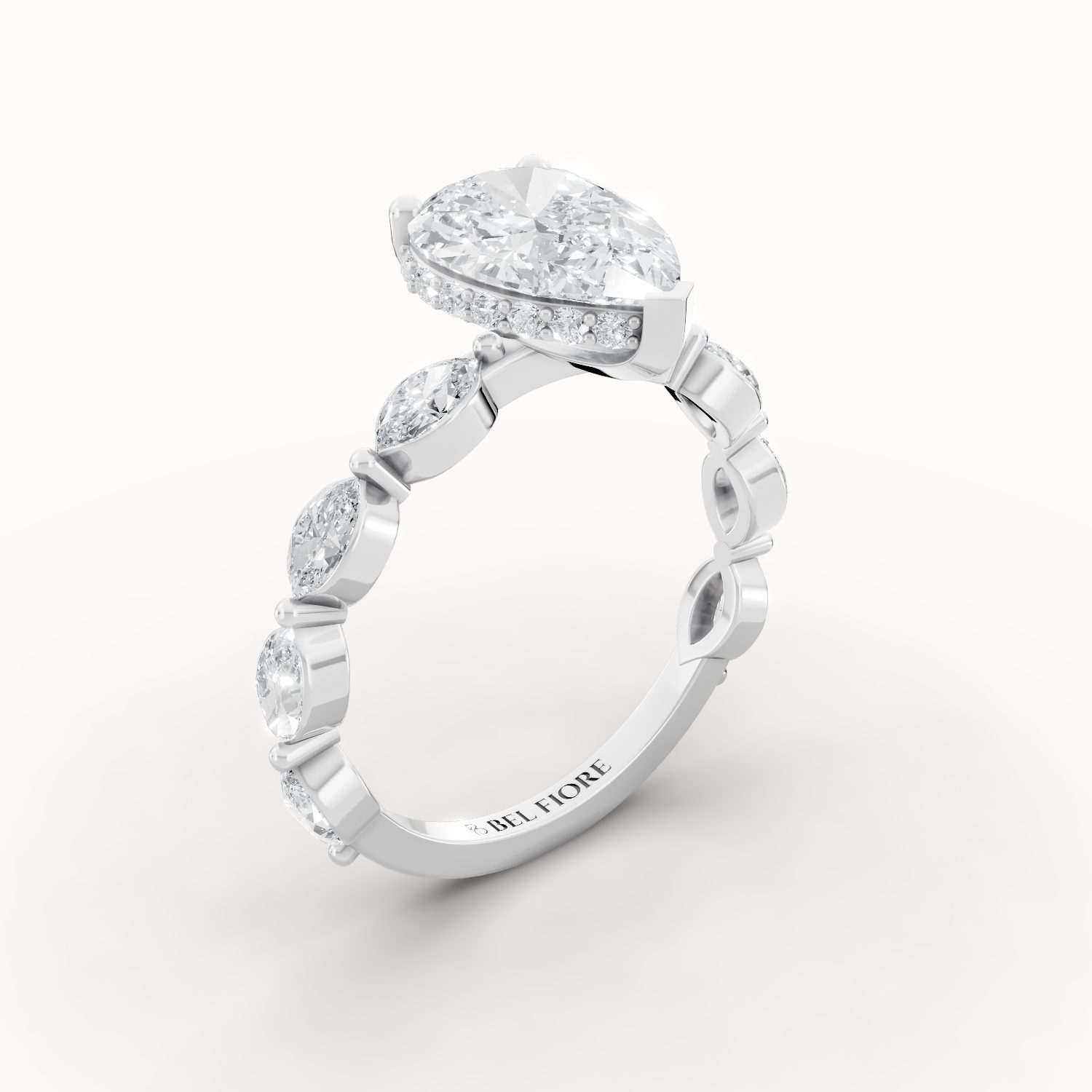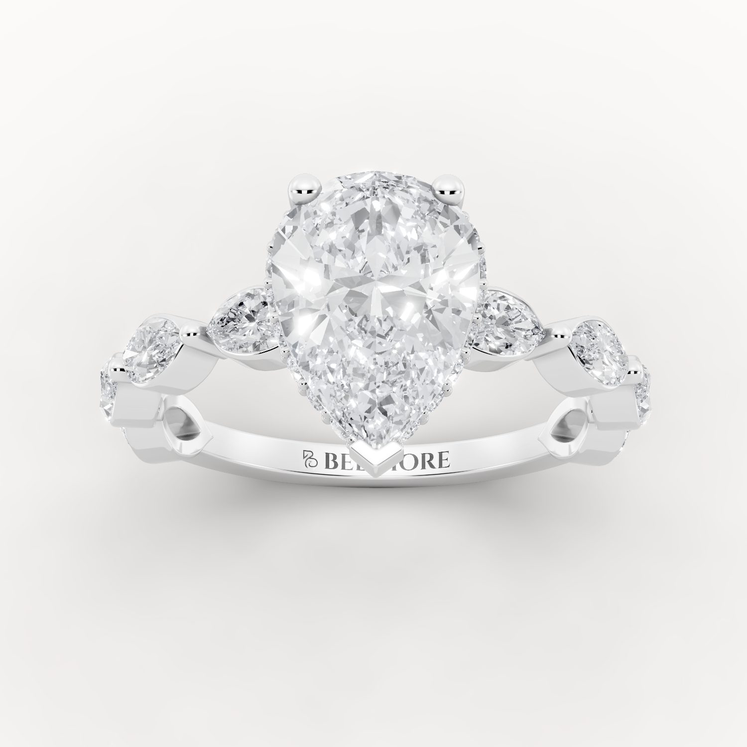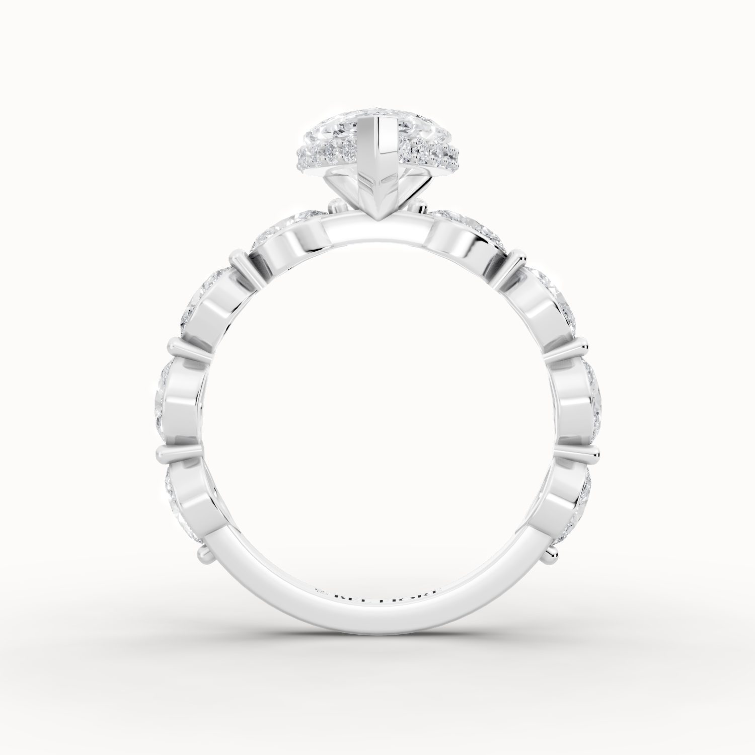 The Classic Diamond Band Engagement Ring enhances the centre stone with delicately set side diamonds along the band. This design adds brilliance and texture while maintaining a balanced silhouette. Crafted for elegance and everyday luxury, it delivers timeless sophistication.