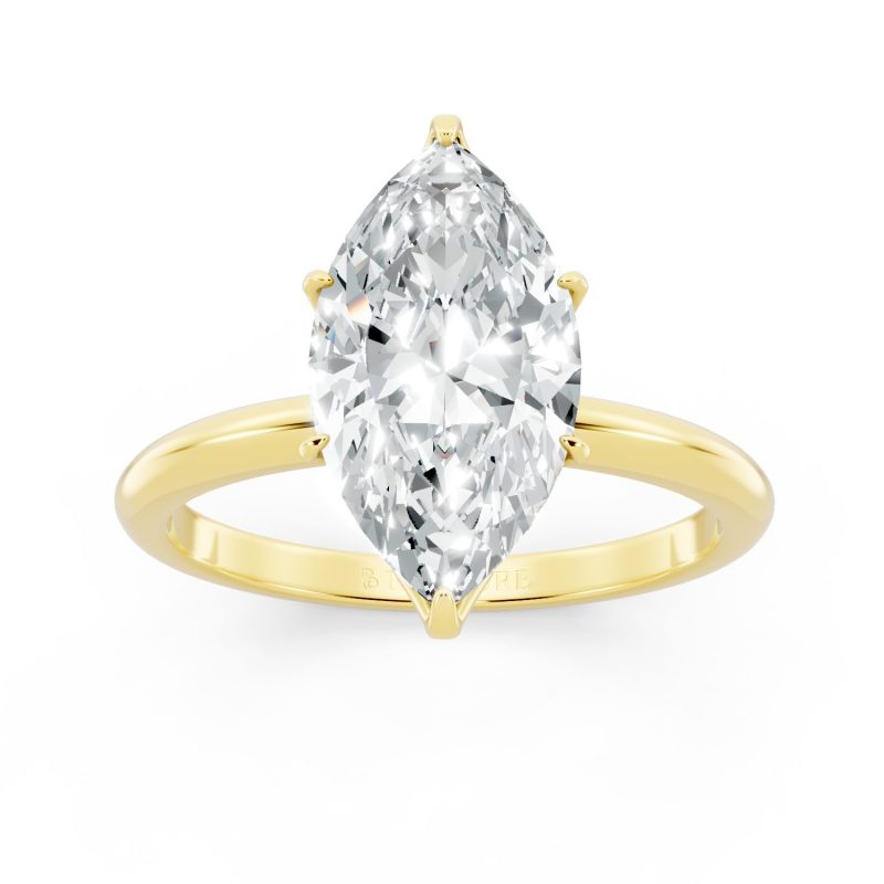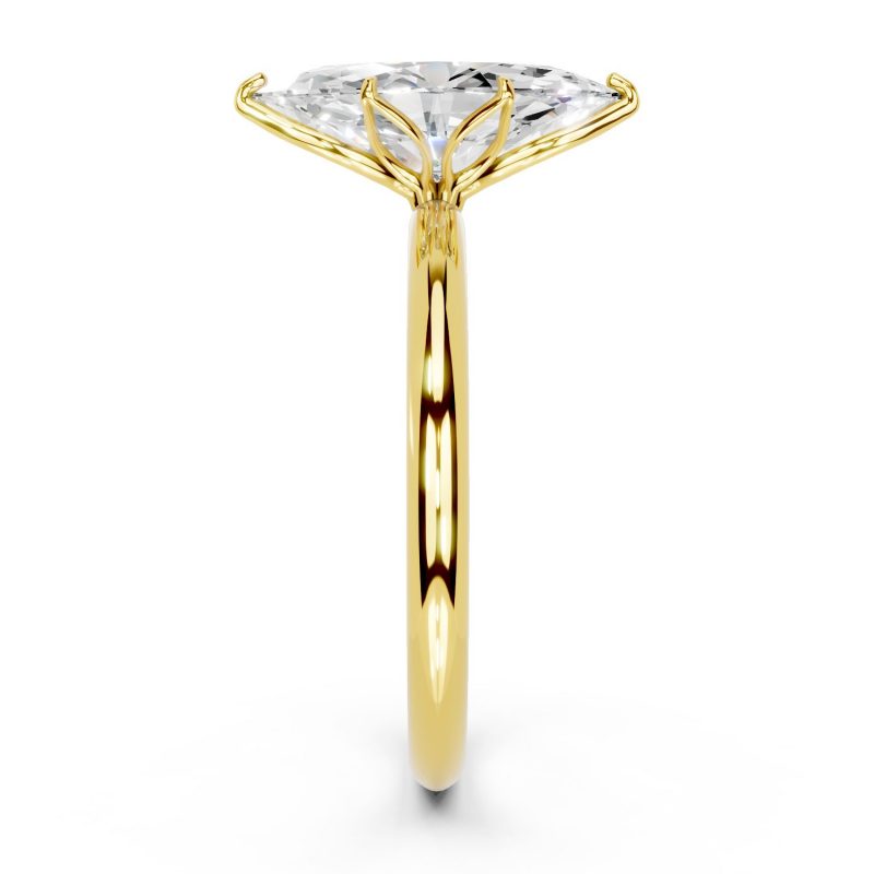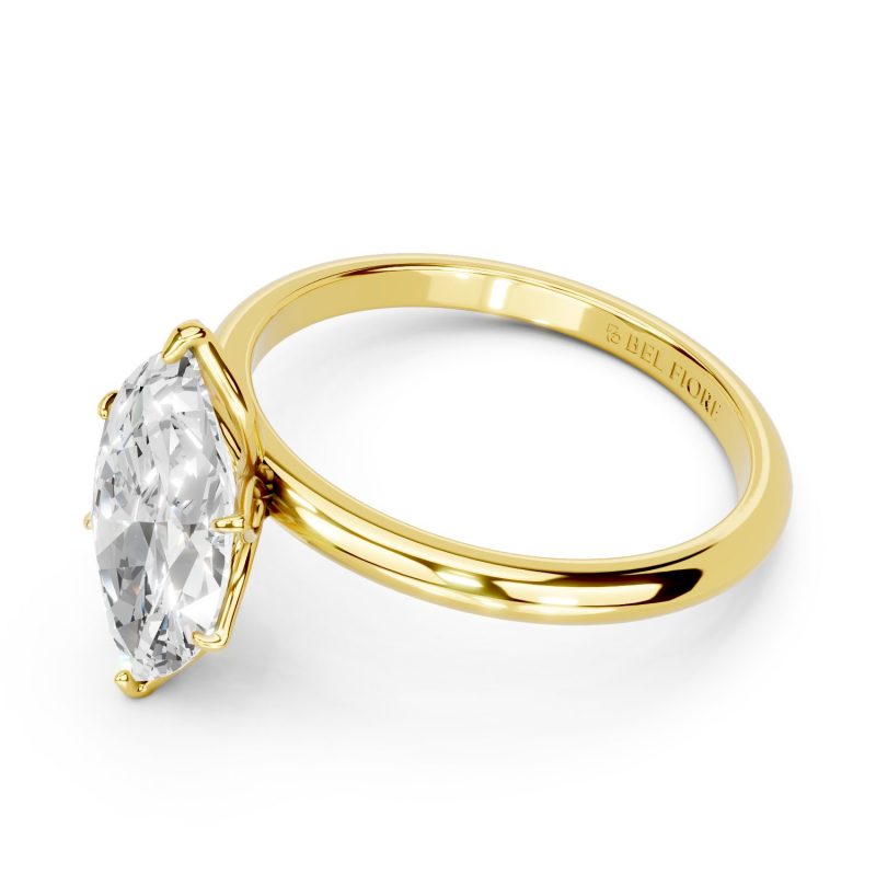 This stunning Bel Fiore ring showcases a brilliant marquise-cut diamond, elegantly set in lustrous yellow gold. With its elongated silhouette and regal sparkle, it’s a refined symbol of sophistication and individuality — made for those who lead with style.