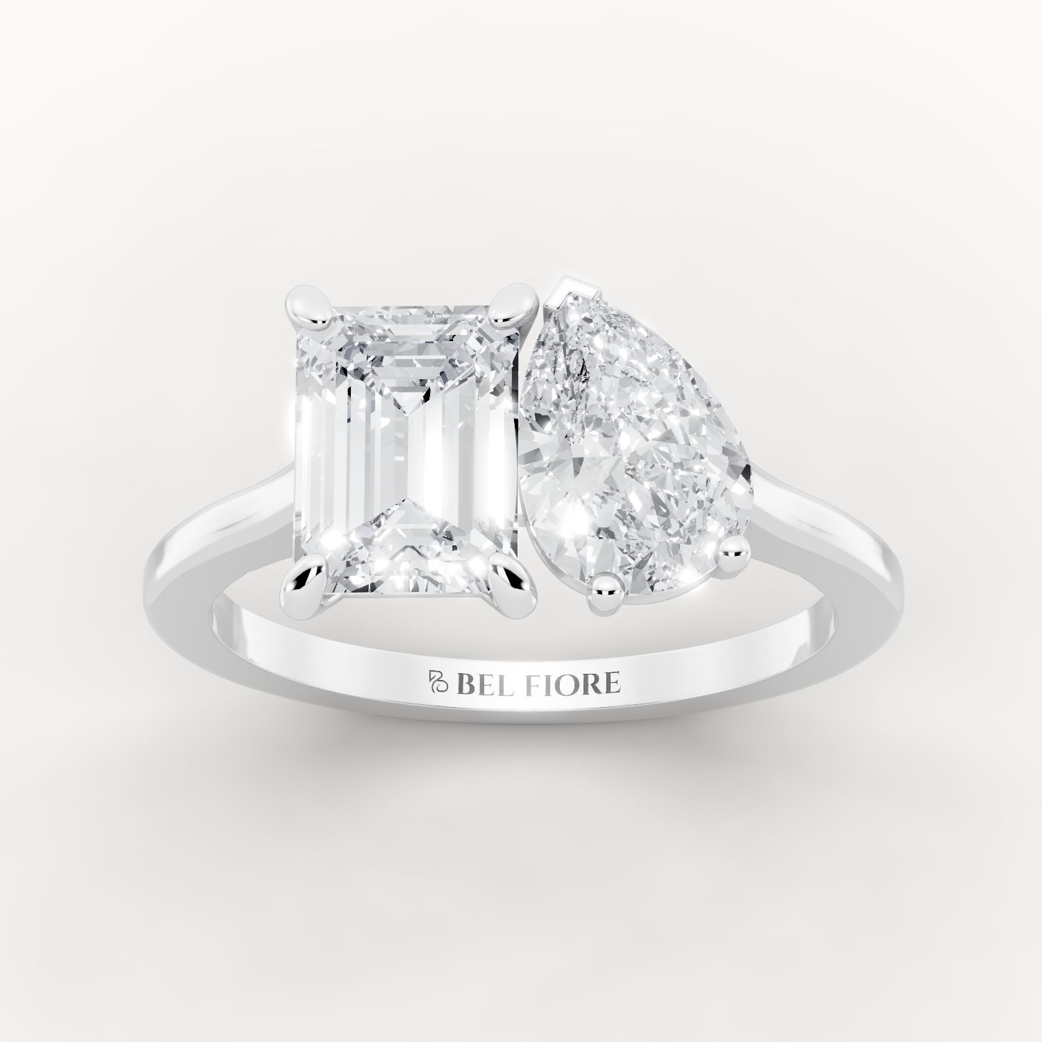 The Contemporary Toi et Moi Engagement Ring showcases two stones placed in elegant dialogue with one another. Its refined proportions create harmony while offering a distinctive visual statement. Designed for couples who value symbolism and individuality, this ring blends meaning with modern sophistication.