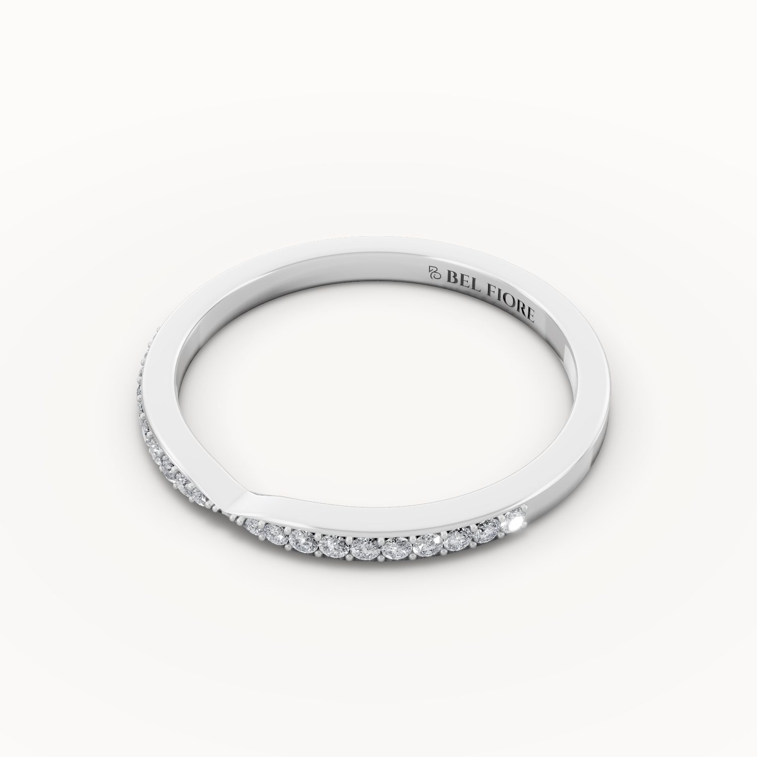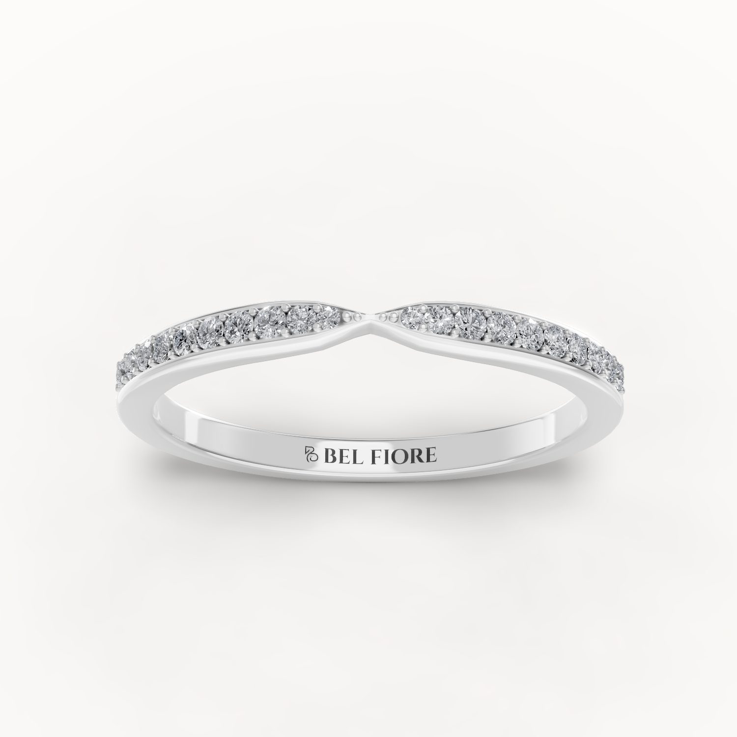 The Curved Pavé Diamond Wedding Band features a soft flowing contour set with fine pavé diamonds across the upper surface. Its elegant curve allows it to sit beautifully alongside an engagement ring, enhancing the overall silhouette with subtle brilliance. Refined and versatile, this band offers a graceful balance of sparkle and sophistication for everyday wear.