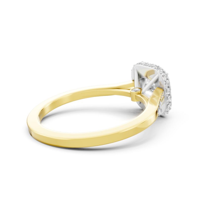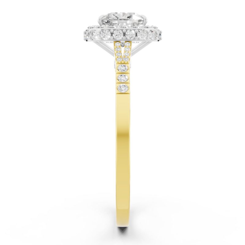 Pavé-set diamonds along the band extend the brilliance, while the two-tone construction brings a unique balance of modern glamour and classic luxury—ideal for those who want standout beauty with timeless appeal.