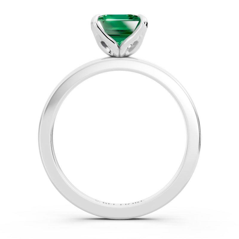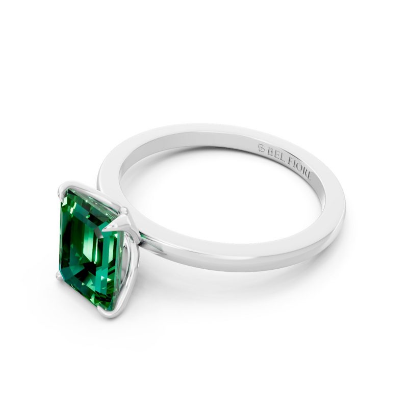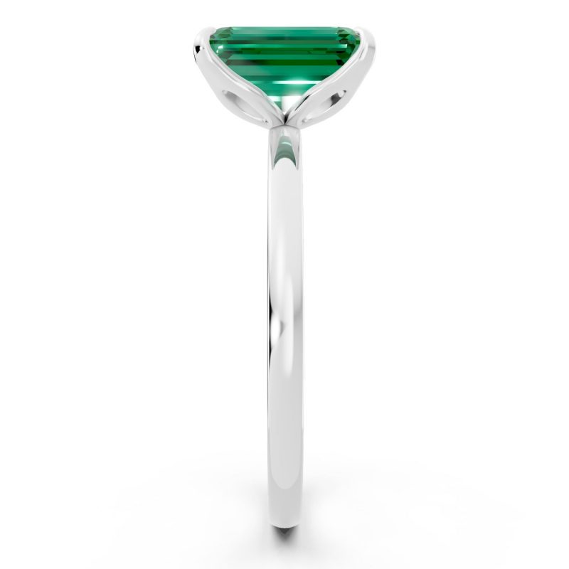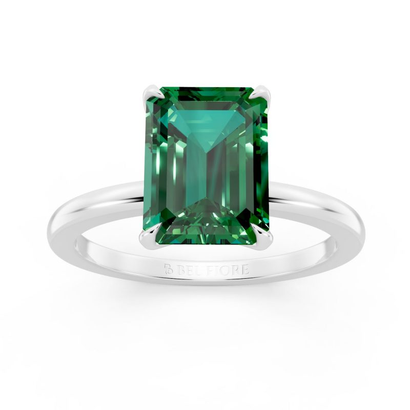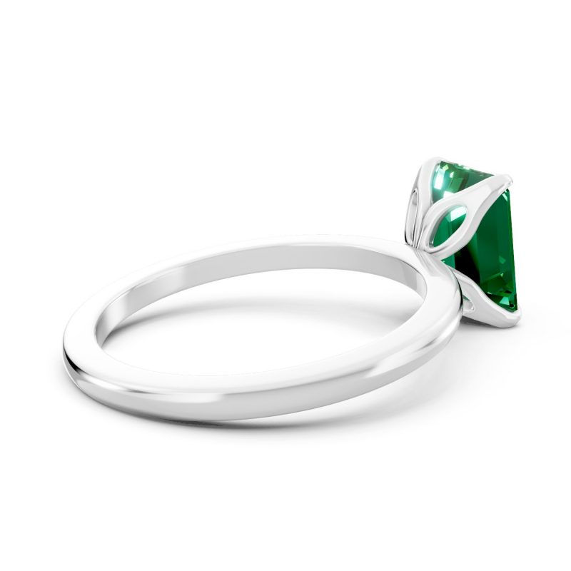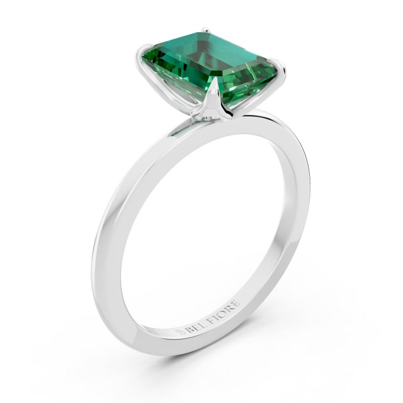 This elegant solitaire ring showcases a striking emerald-cut green gemstone, beautifully framed by a polished white gold band. The elongated facets highlight the stone’s clarity and color, while the cool-toned setting lends a crisp, contemporary edge. A perfect blend of modern precision and timeless sophistication.