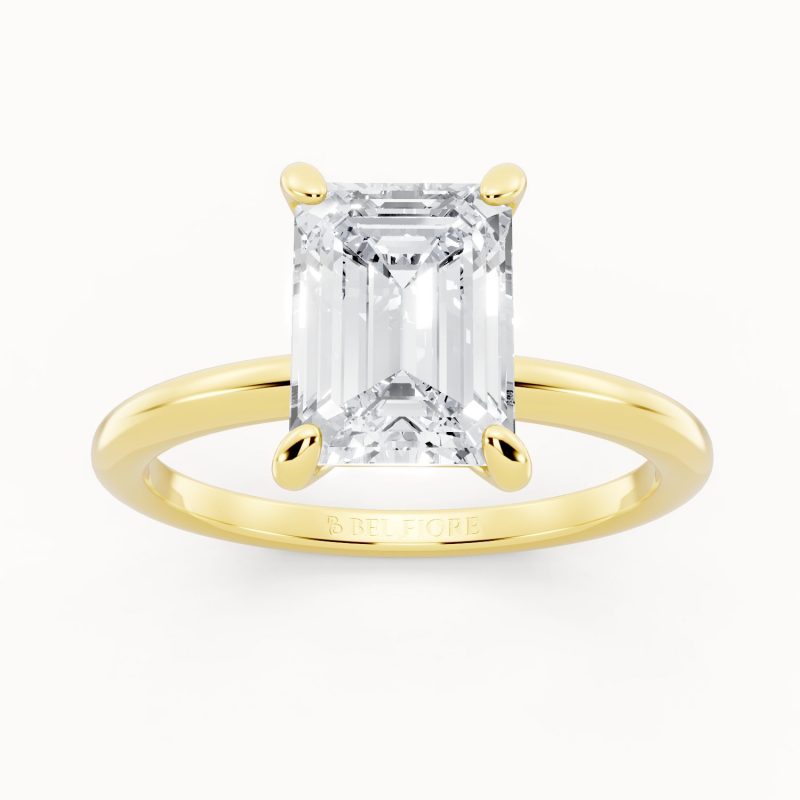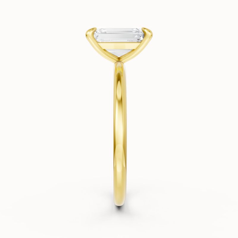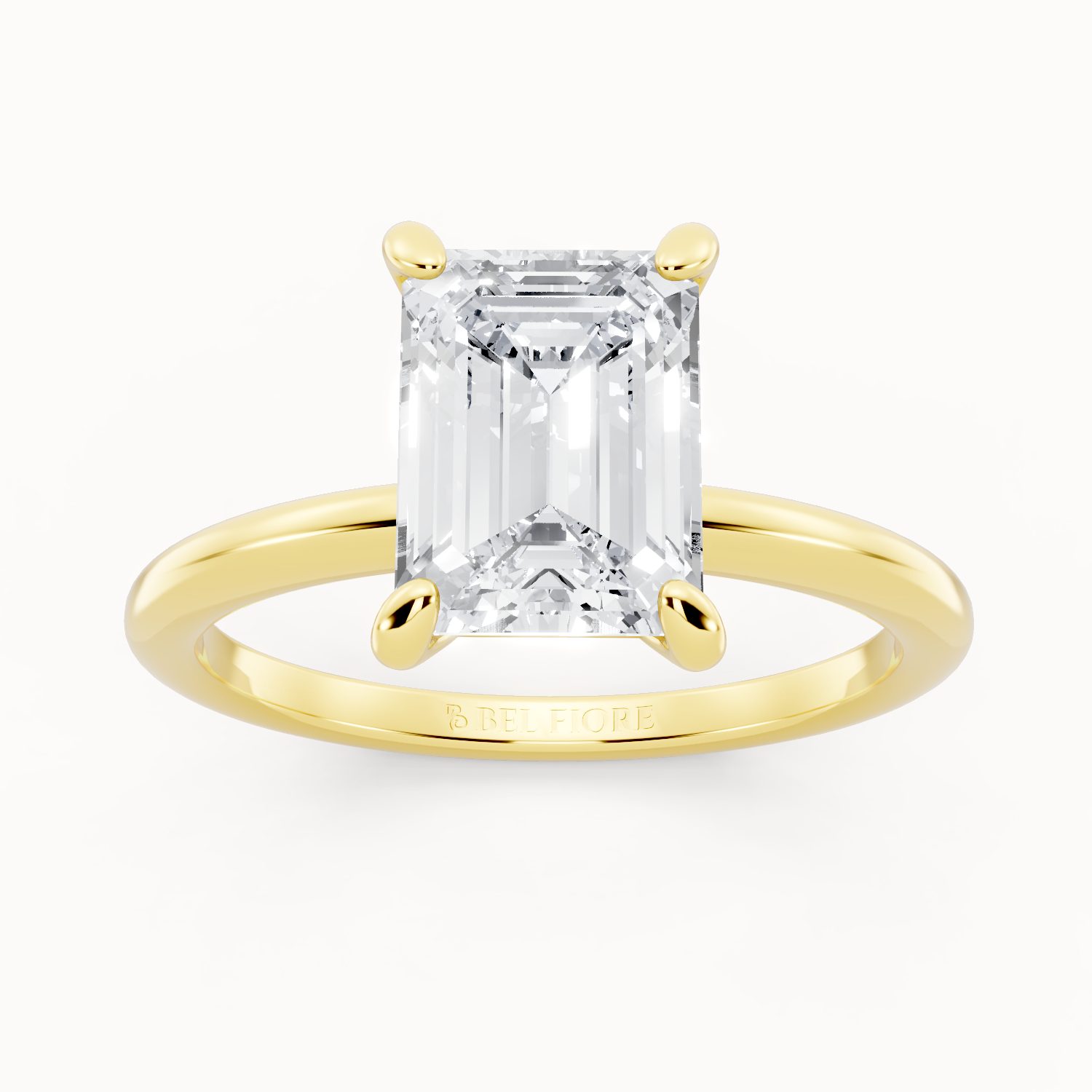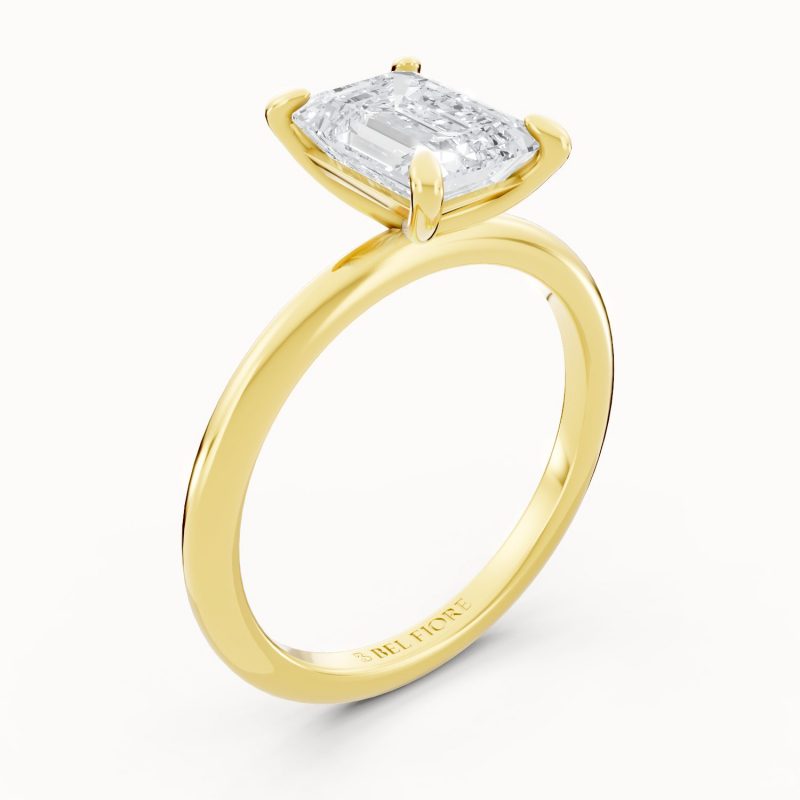 This solitaire ring, crafted in radiant yellow gold, highlights the emerald-cut diamond’s elegant facets. A perfect balance of tradition and brilliance, it embodies timeless luxury and enduring charm.