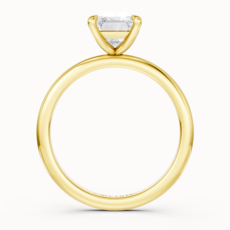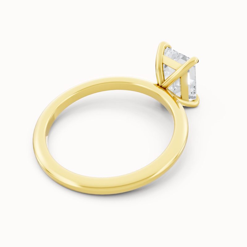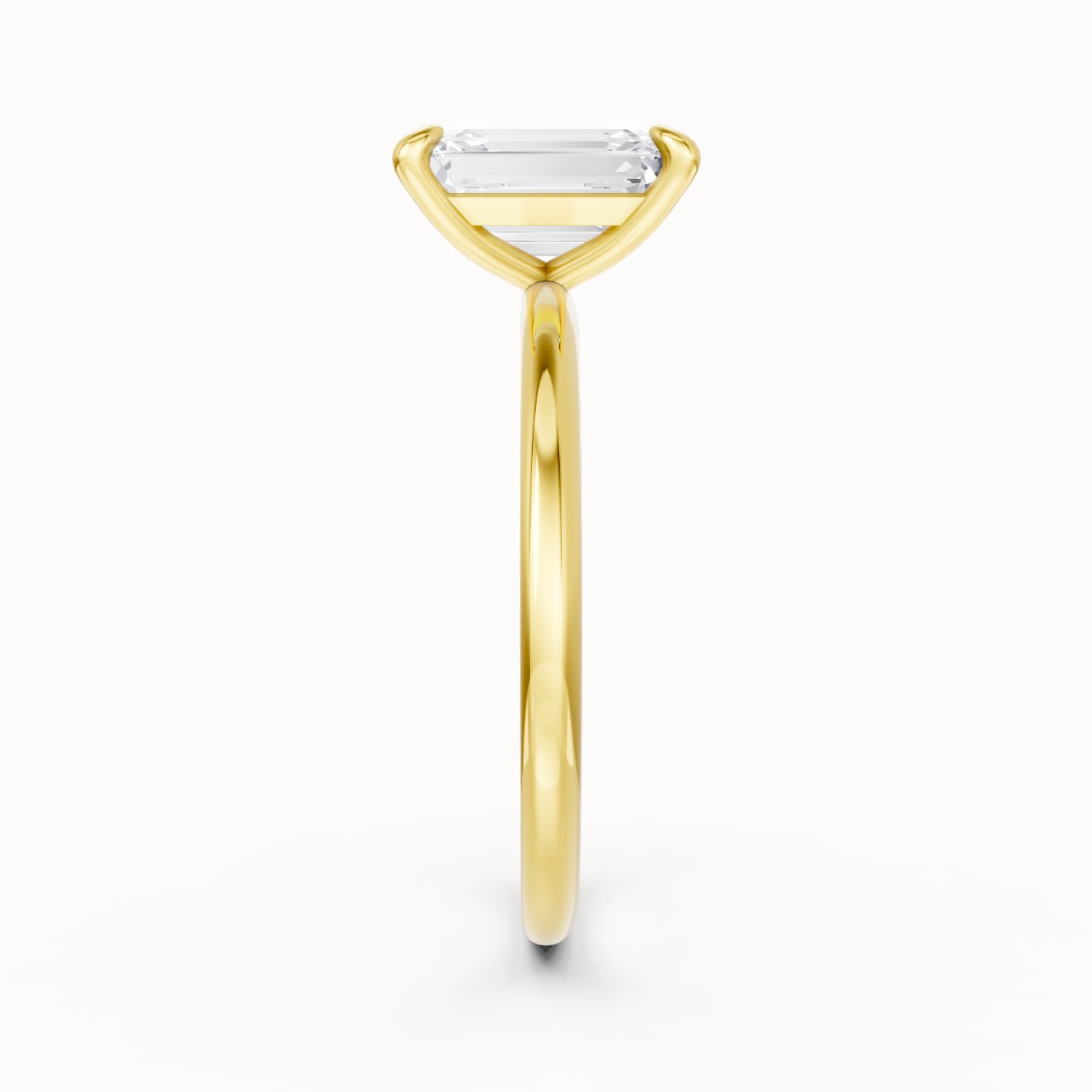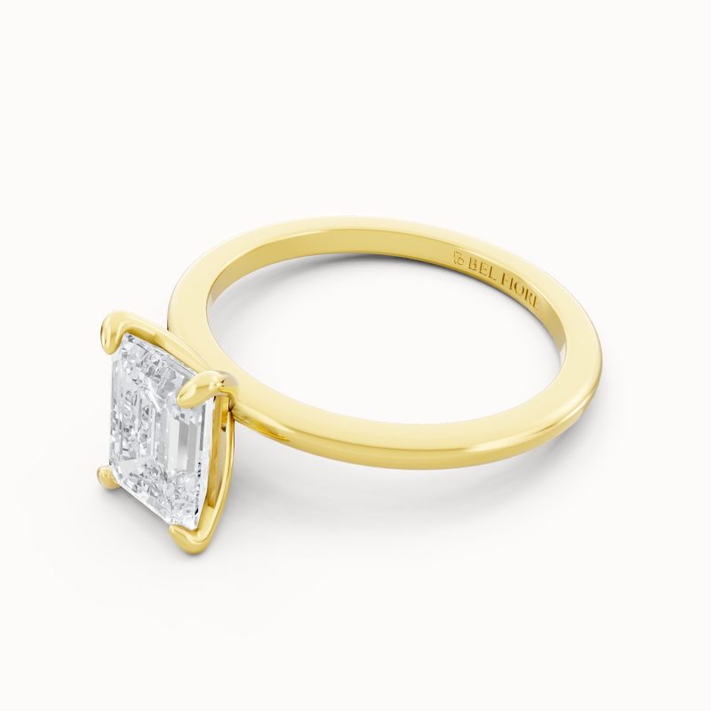 This solitaire ring, crafted in radiant yellow gold, highlights the emerald-cut diamond’s elegant facets. A perfect balance of tradition and brilliance, it embodies timeless luxury and enduring charm.