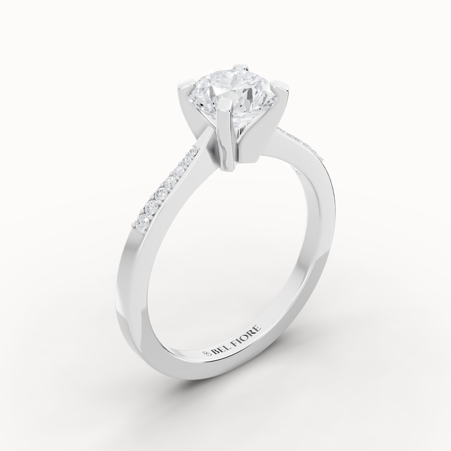 This Floral Side Detail Engagement Ring introduces gentle curves and decorative elements for a romantic feel. The design adds character while maintaining refined balance and sparkle. Crafted for individuality, it offers timeless elegance with artistic charm.