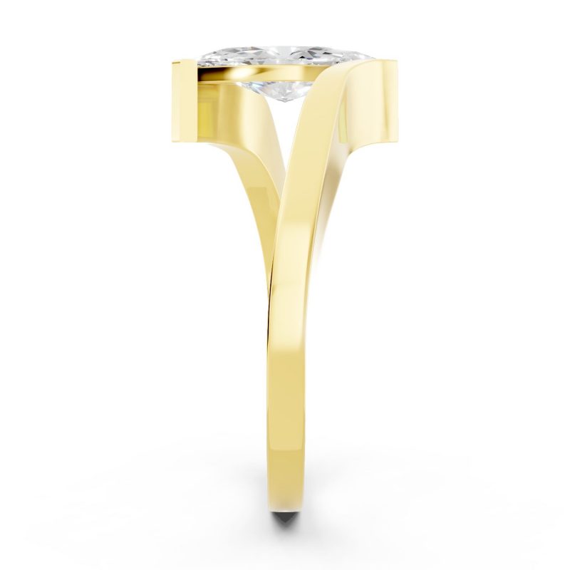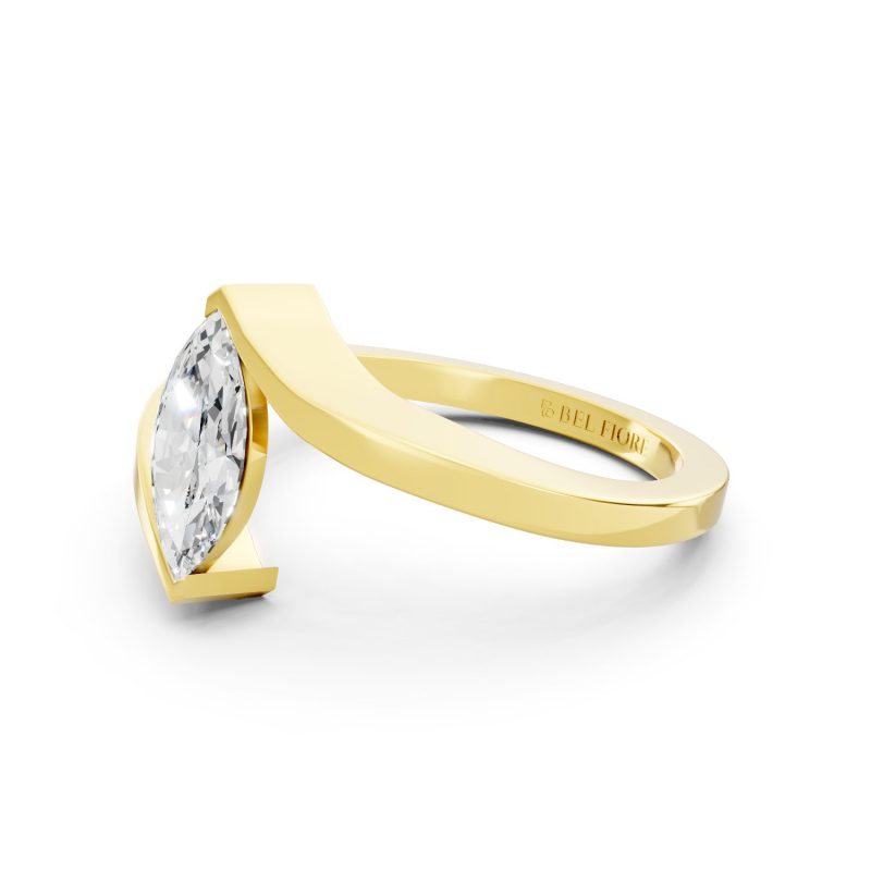 Sculptural elegance meets timeless radiance in this refined Bel Fiore design. A striking marquise-cut diamond floats between the graceful curves of a polished V-shank, its brilliance magnified by the warm glow of yellow gold.
