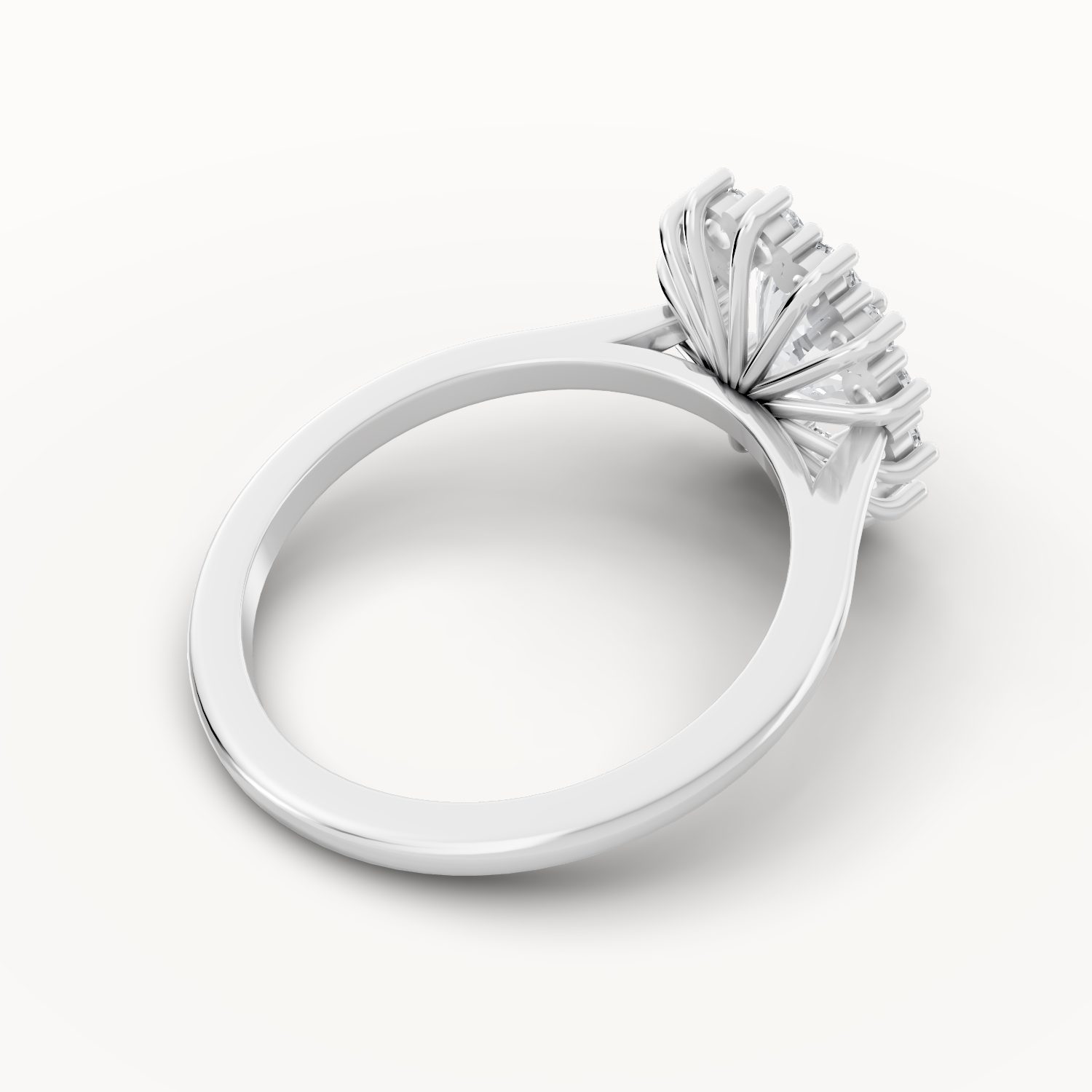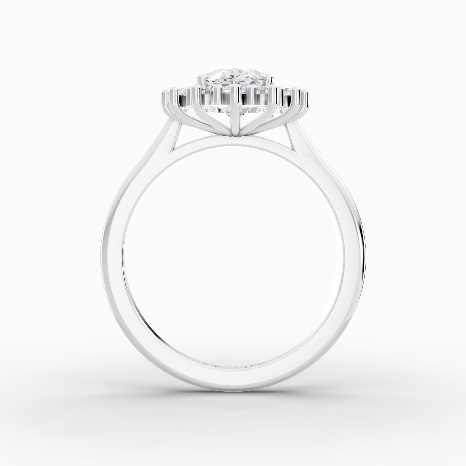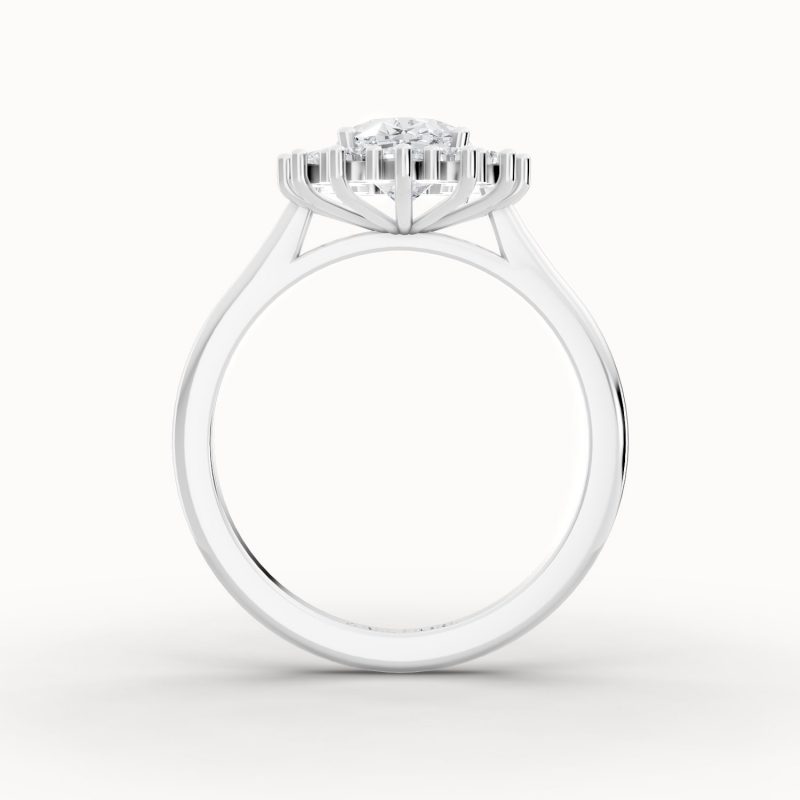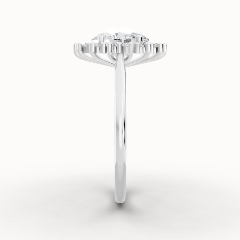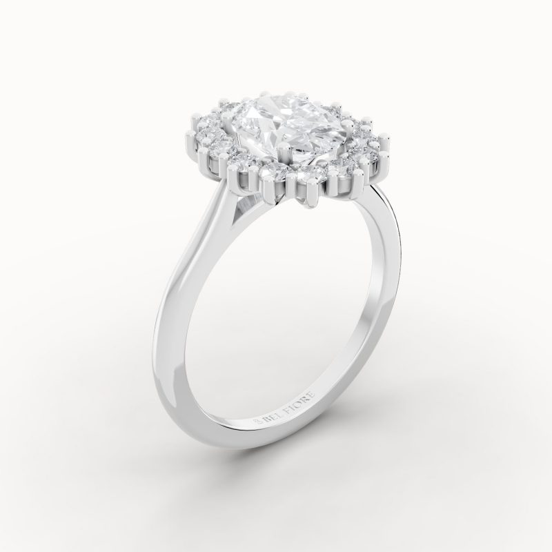 Set in luminous white gold, this oval halo ring showcases a central oval diamond, embraced by a halo of glittering pavé diamonds. Its refined design highlights the brilliance of the stones, making it a timeless piece of elegance for every occasion.