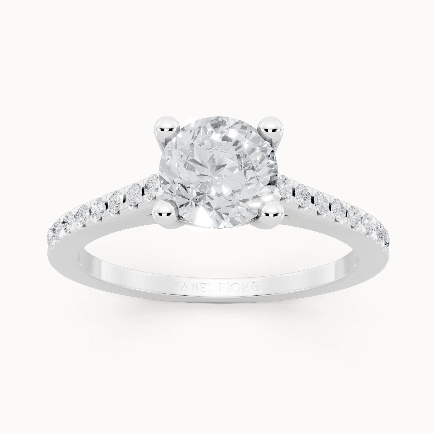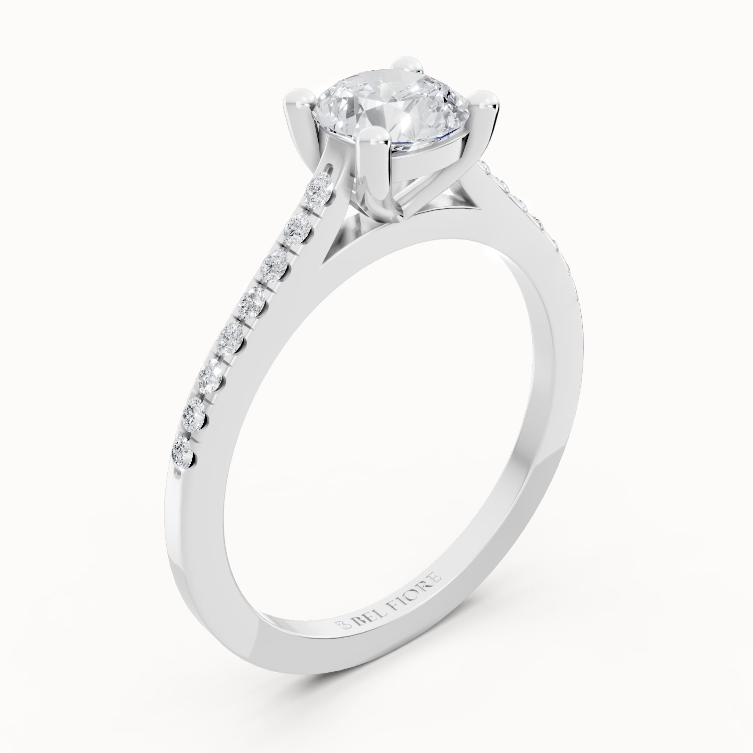 The Pavé Side Diamond Solitaire Engagement Ring delivers brilliance from every angle. Delicately detailed side accents add a continuous shimmer that enhances the centre stone without overwhelming it. This design blends classic elegance with luxurious sparkle, offering a refined yet captivating presence. Thoughtfully crafted for lasting beauty, it’s a perfect symbol of commitment and timeless style.