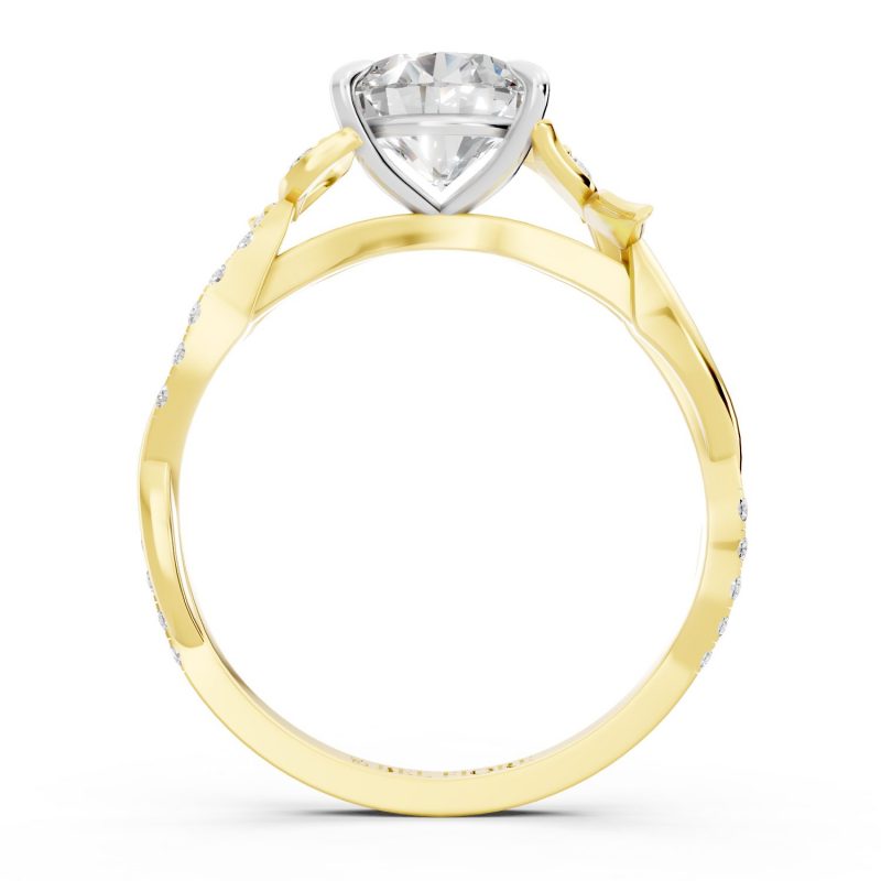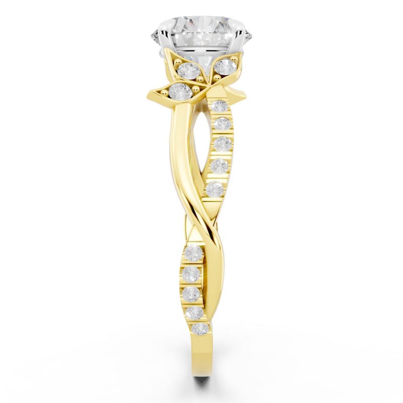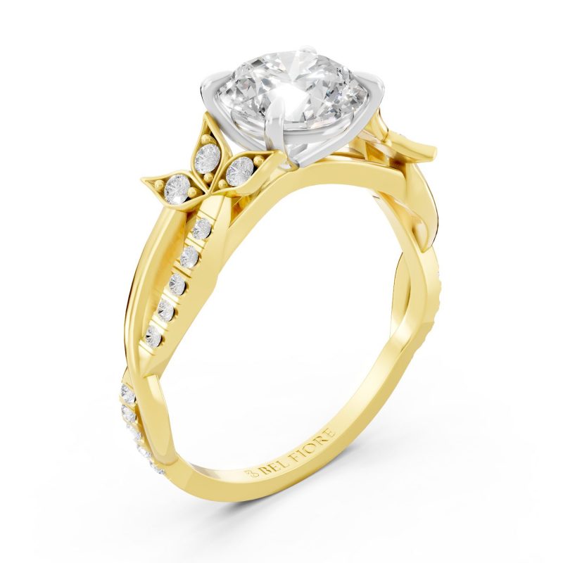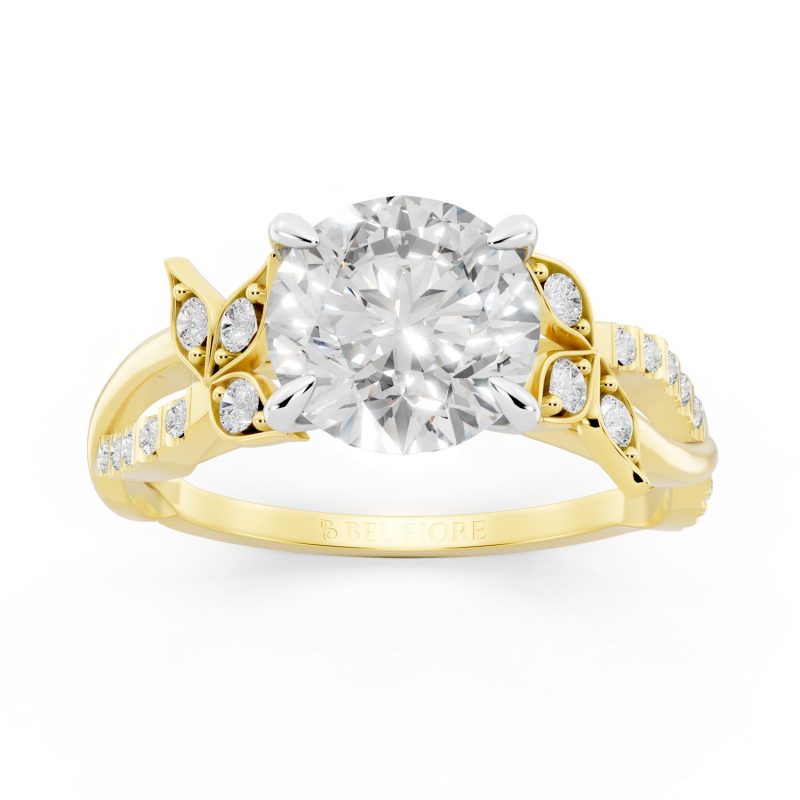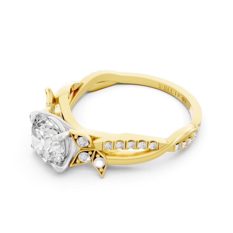 Golden Petal – Round Diamond Ring in Yellow Gold with White Gold Head