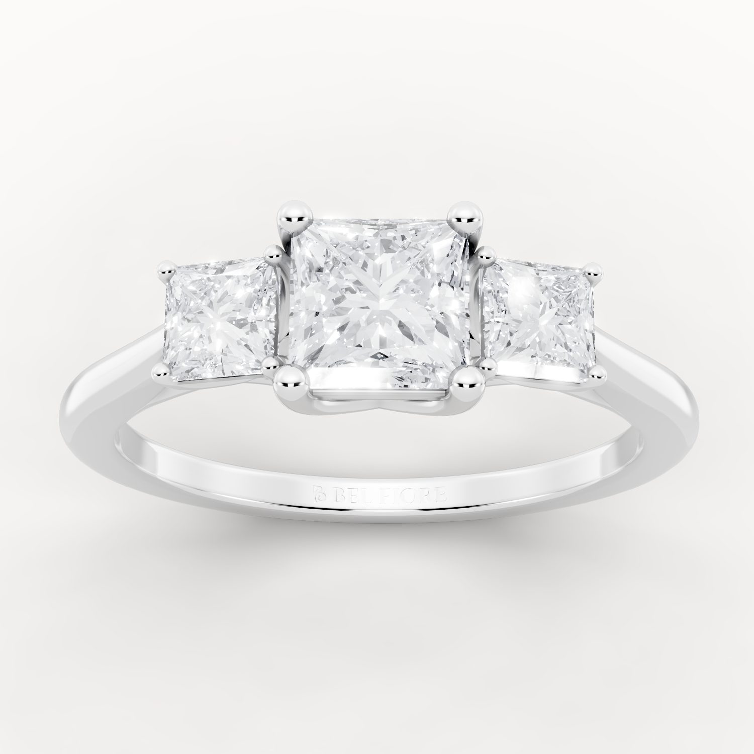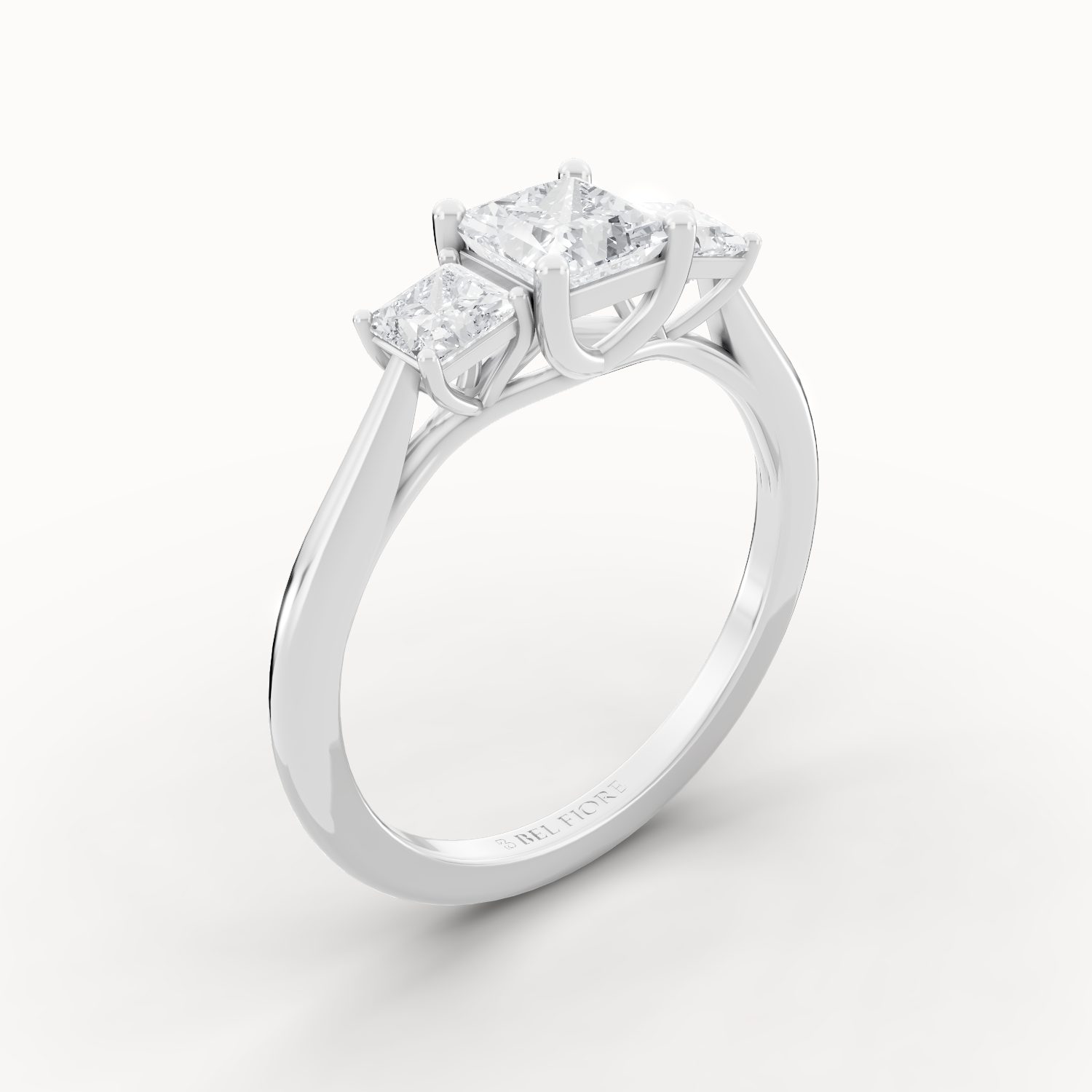 The Princess Cut Trilogy Engagement Ring offers strong geometry and striking brilliance. A structured three-stone layout enhances visual impact while maintaining balance. Designed for confident elegance, this ring delivers timeless beauty with modern strength.