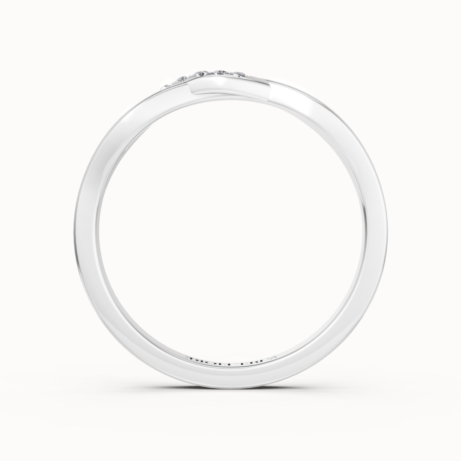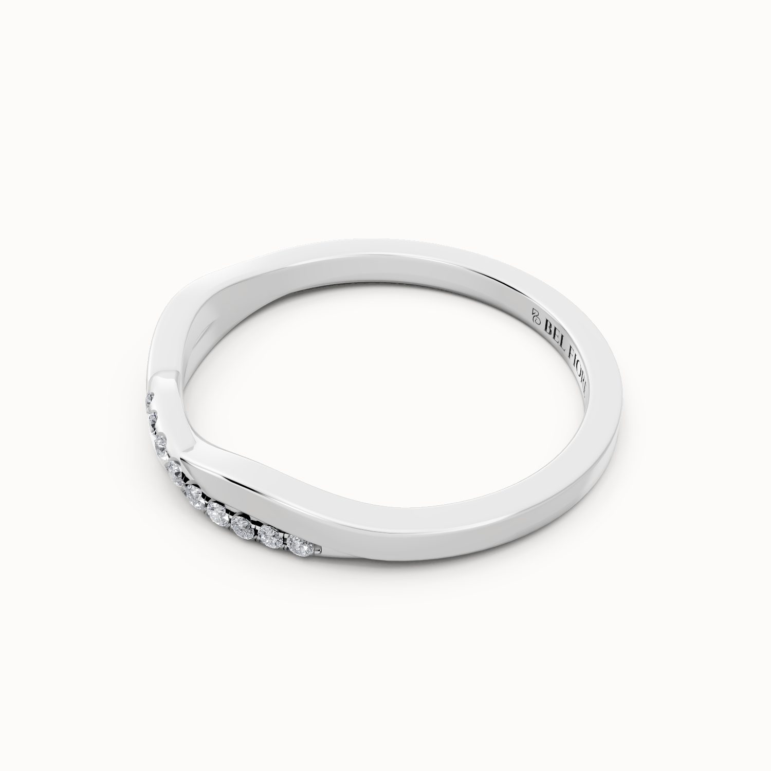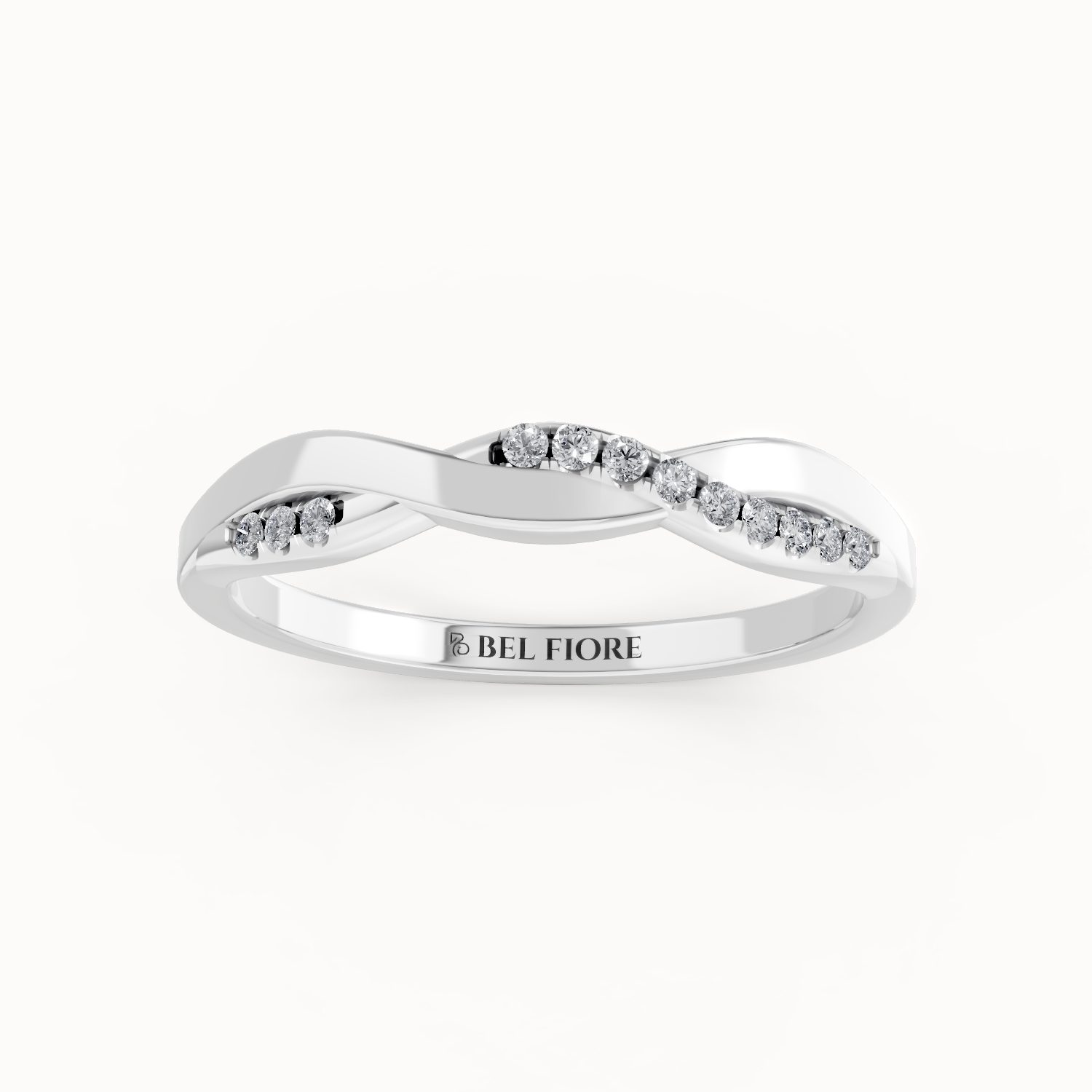 The Twisted Diamond Wedding Band showcases a flowing crossover design that creates a graceful sense of movement. Fine diamonds are set along one side of the twist, adding refined brilliance while maintaining a balanced and contemporary look. Sculptural yet delicate, this band pairs beautifully with engagement rings or can be worn alone as a subtle statement of modern elegance.