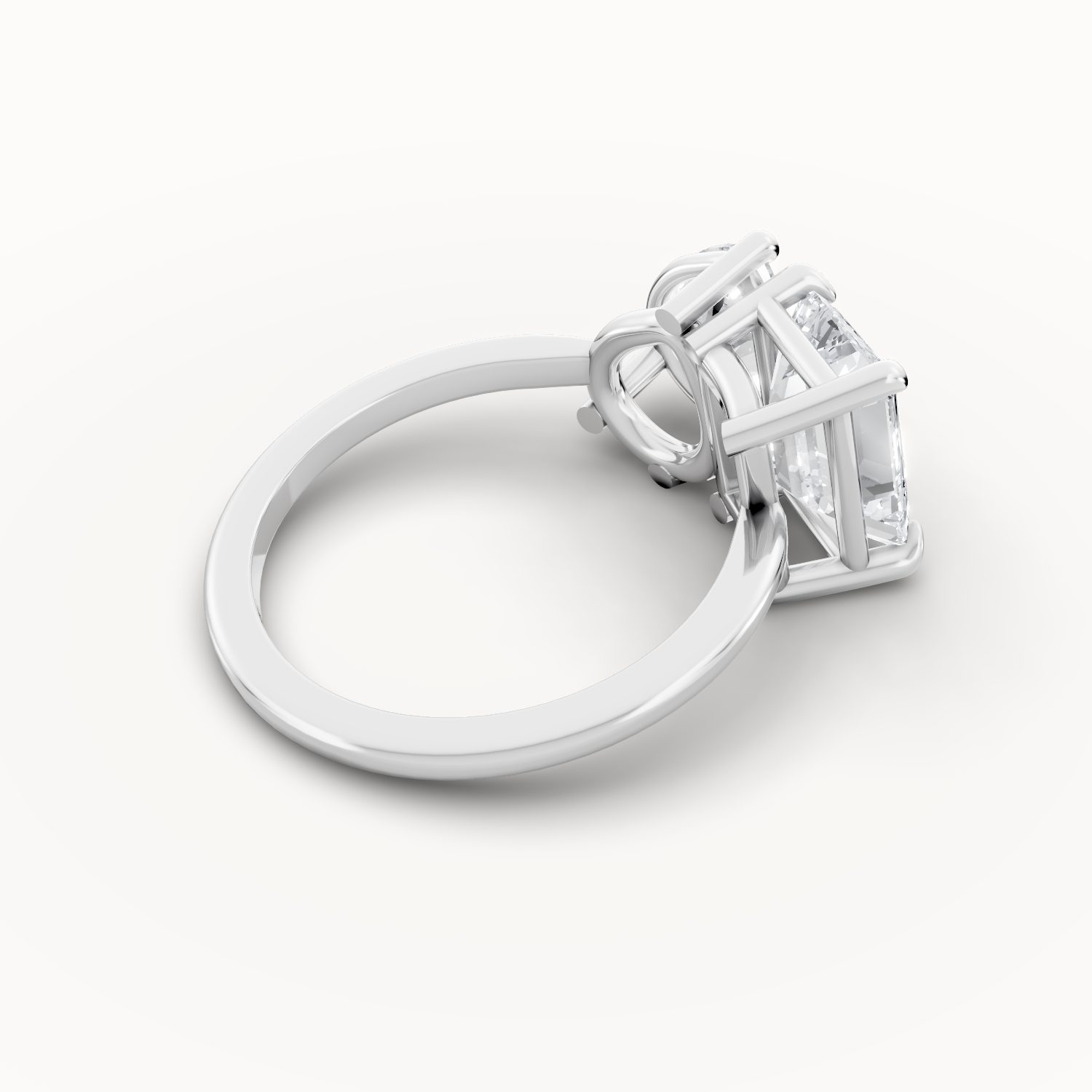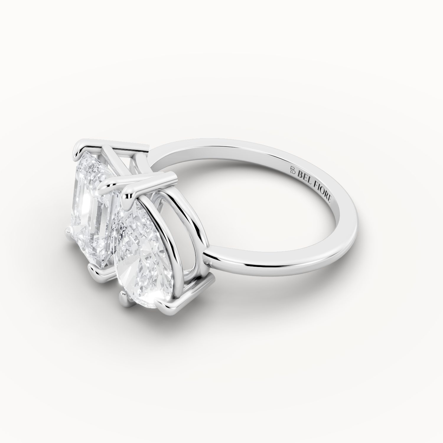 In radiant white gold, this contemporary two-stone ring captures the perfect balance between structure and flow. The emerald-cut diamond stands for strength and clarity, while the pear shape evokes emotion and grace. Together, they shine with sophistication and eternal brilliance.